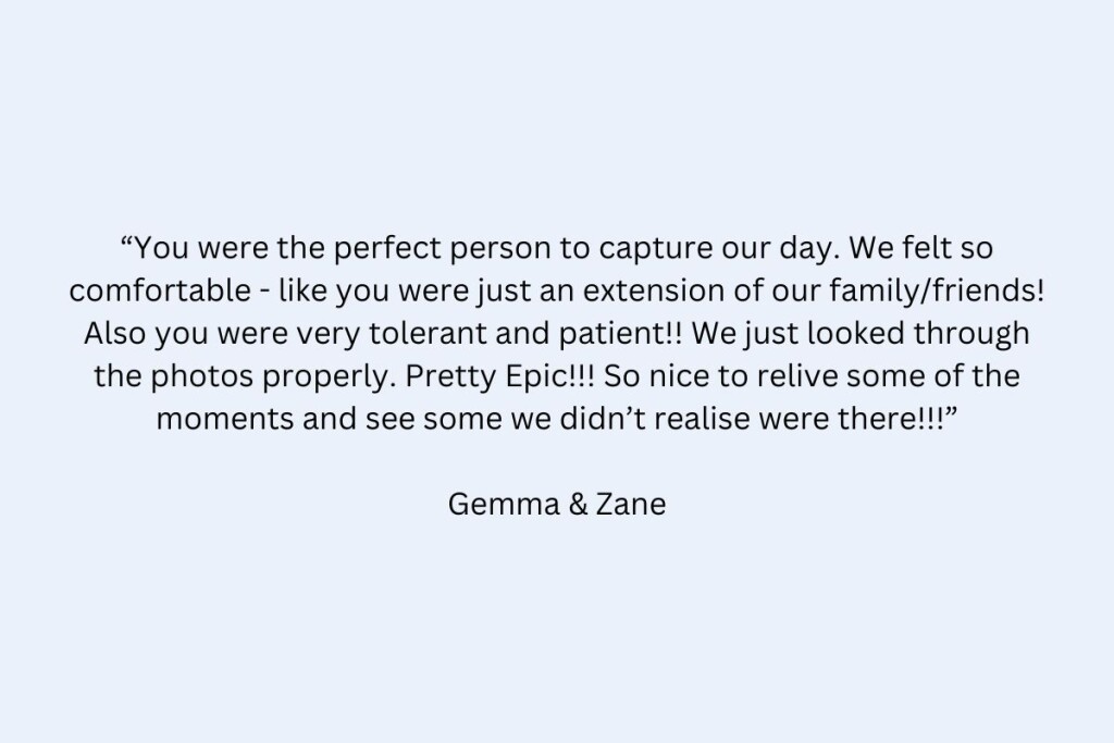 Invest from as little as $2290 for coverage of your ceremony, including group portraits and a bridal party photo session.