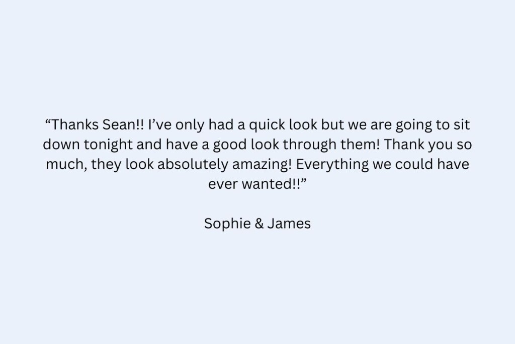 Or from $3450 for our most popular package, adding coverage of you getting ready earlier in the day and the reception celebrations until just after the first dance.