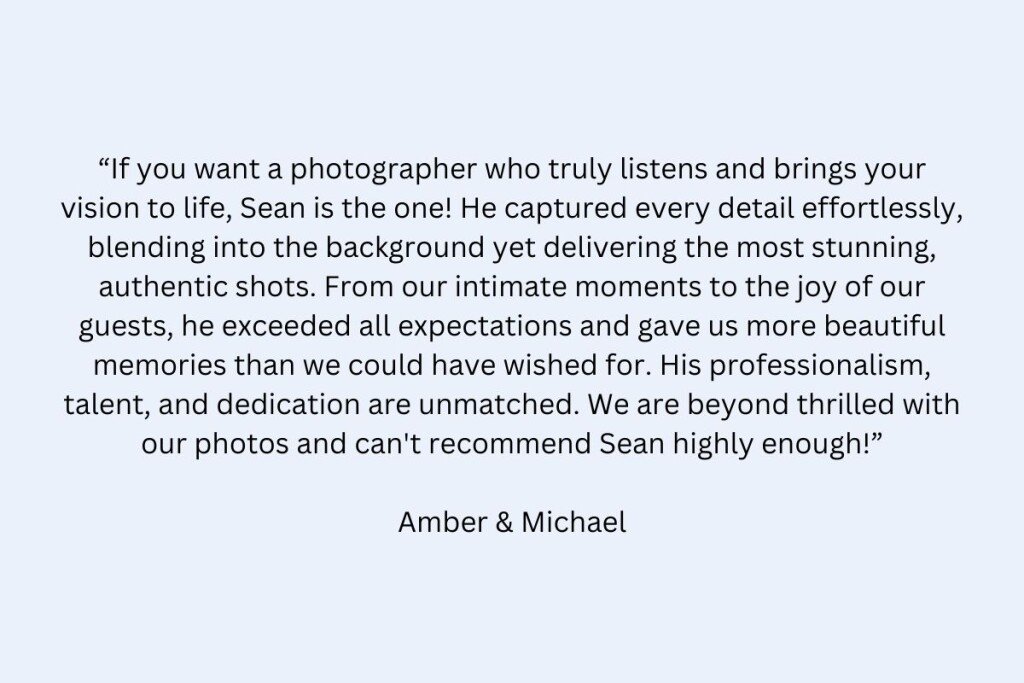 Don't risk disaster by hiring an inexperienced photographer. With over 35 years of combined experience, we've been trusted by hundreds of couples to document their wedding day, allowing them to be fully present in every moment.